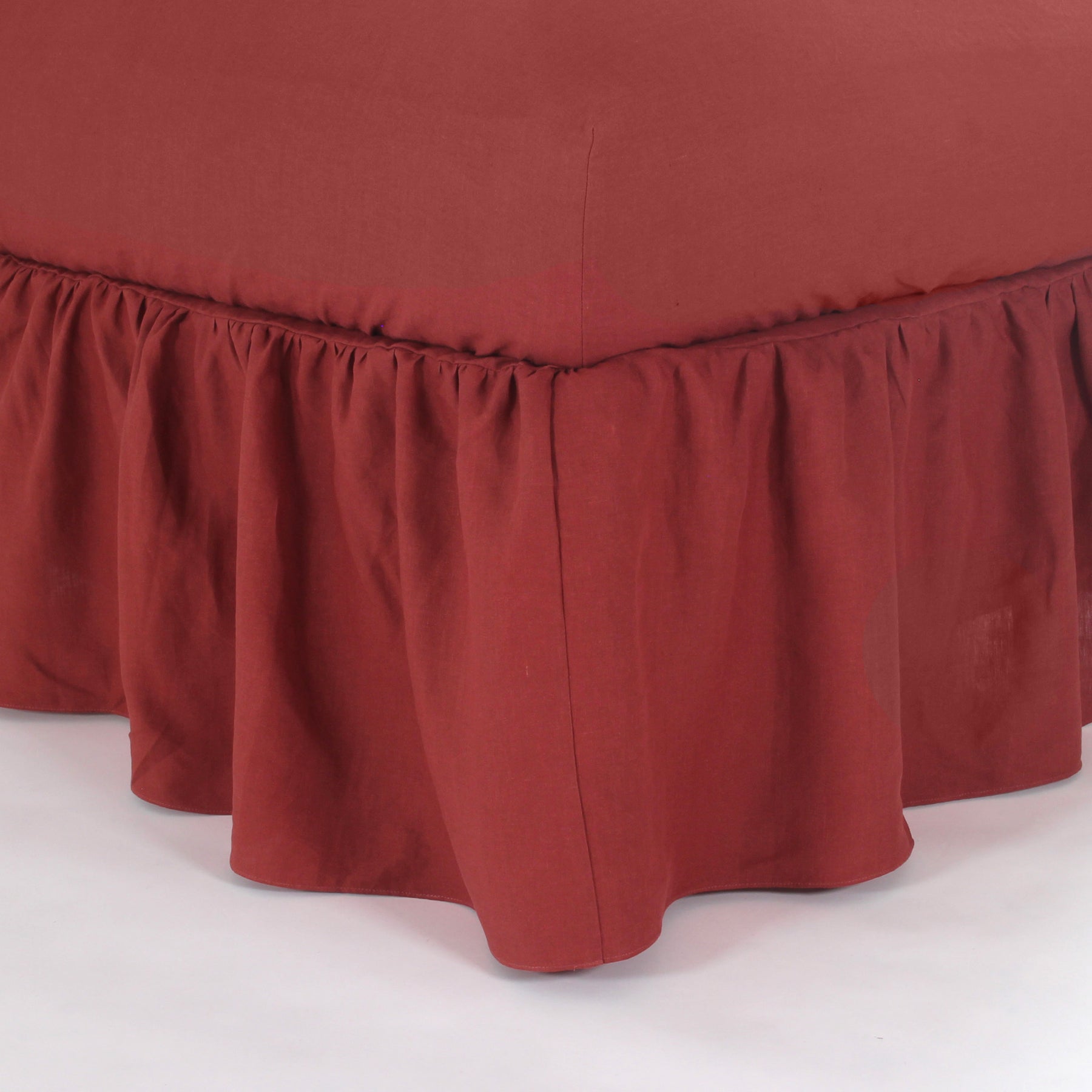 Gathered Washed Linen Bedskirt (Brick)