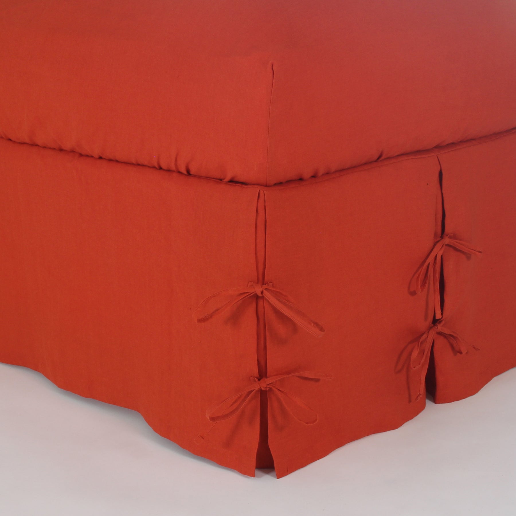 Linen Knotted Bed Skirt - coral