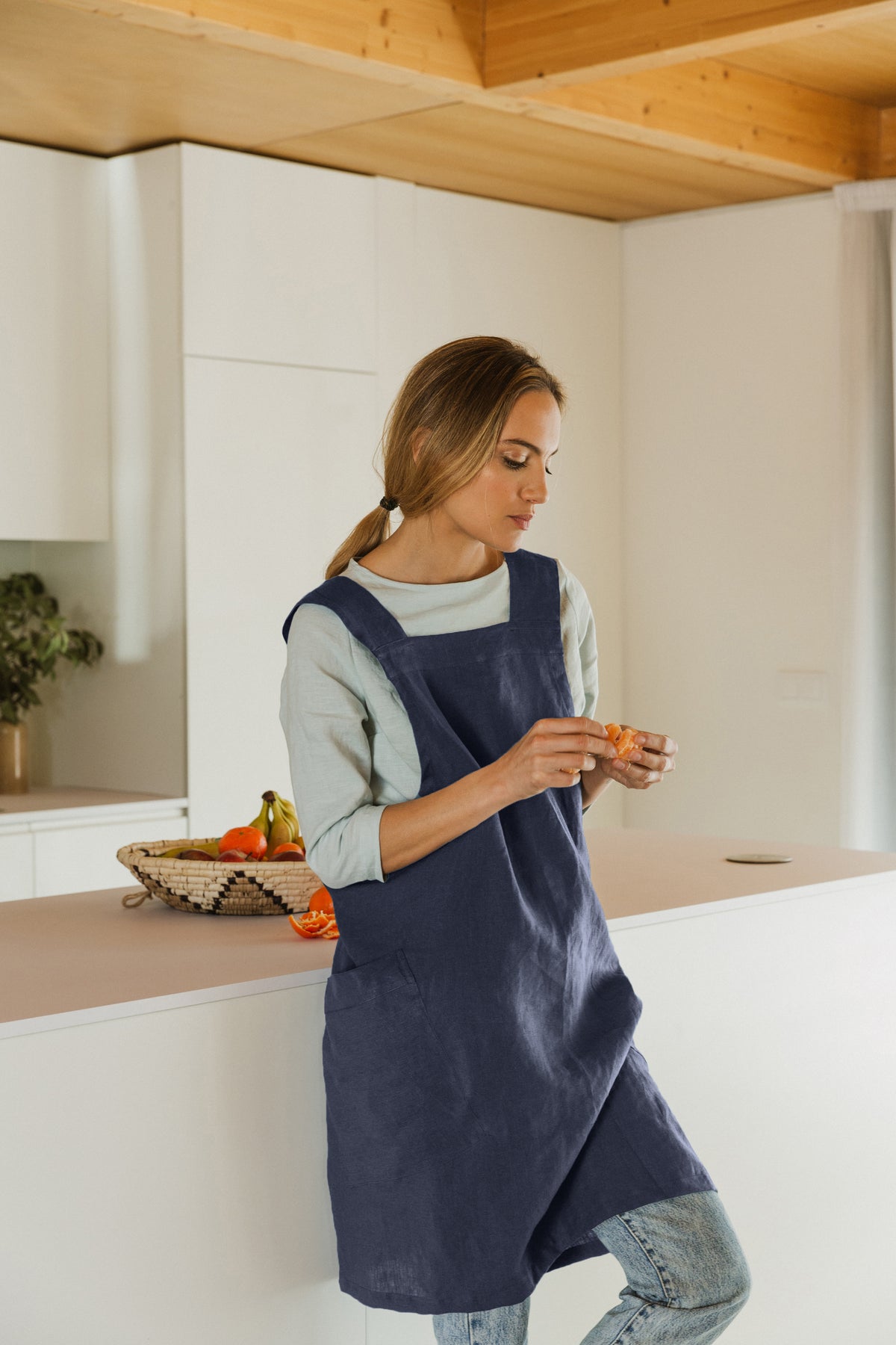 Linen pinafore apron french blue - Noa