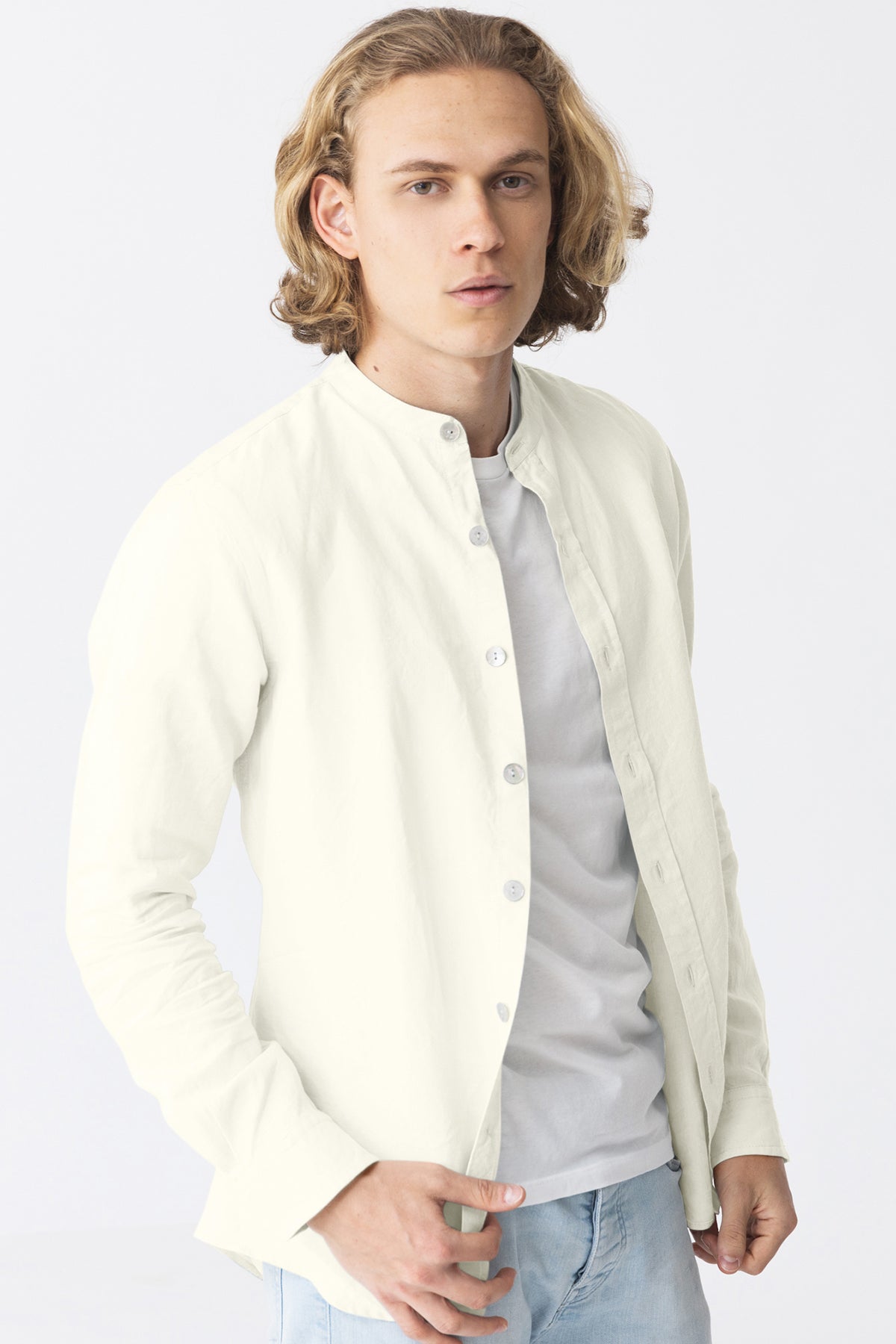 Mandarin collar linen shirt ivory - Natanael
