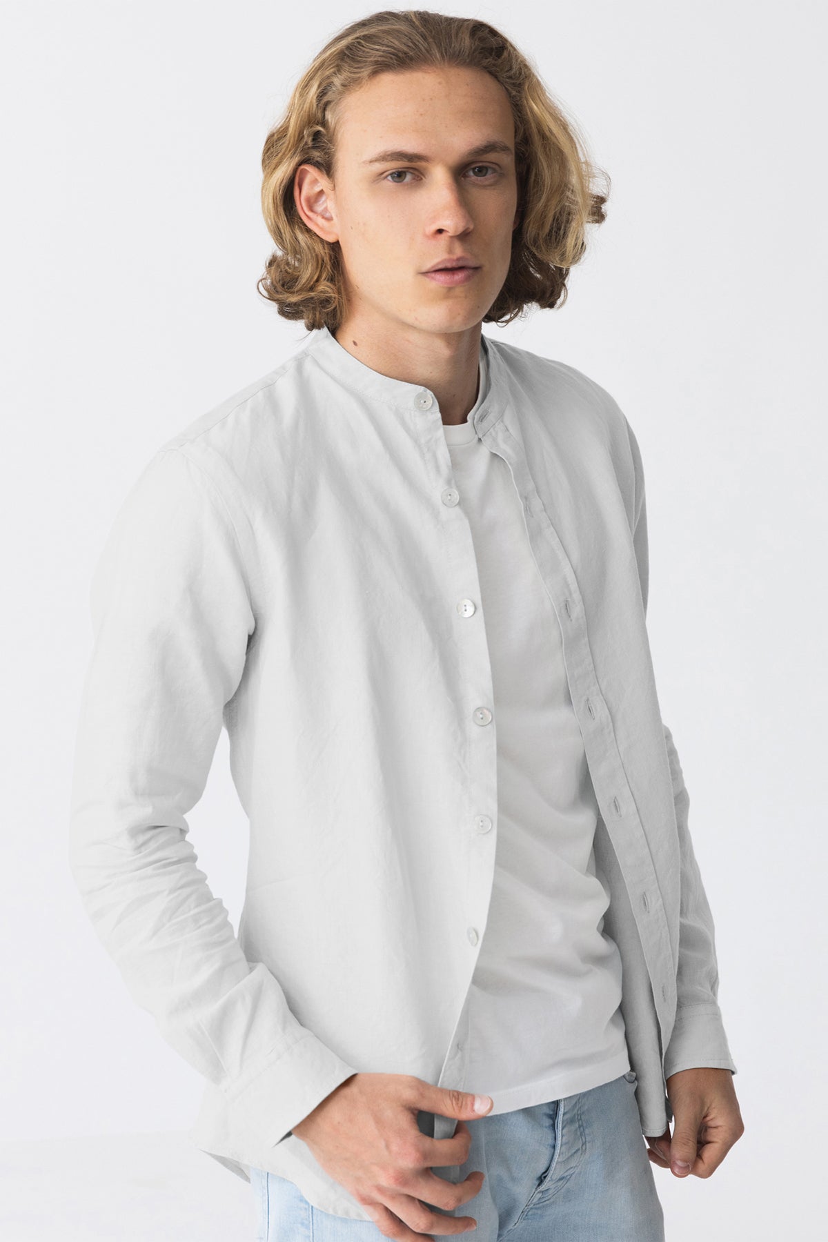 Mandarin collar linen shirt white - Natanael