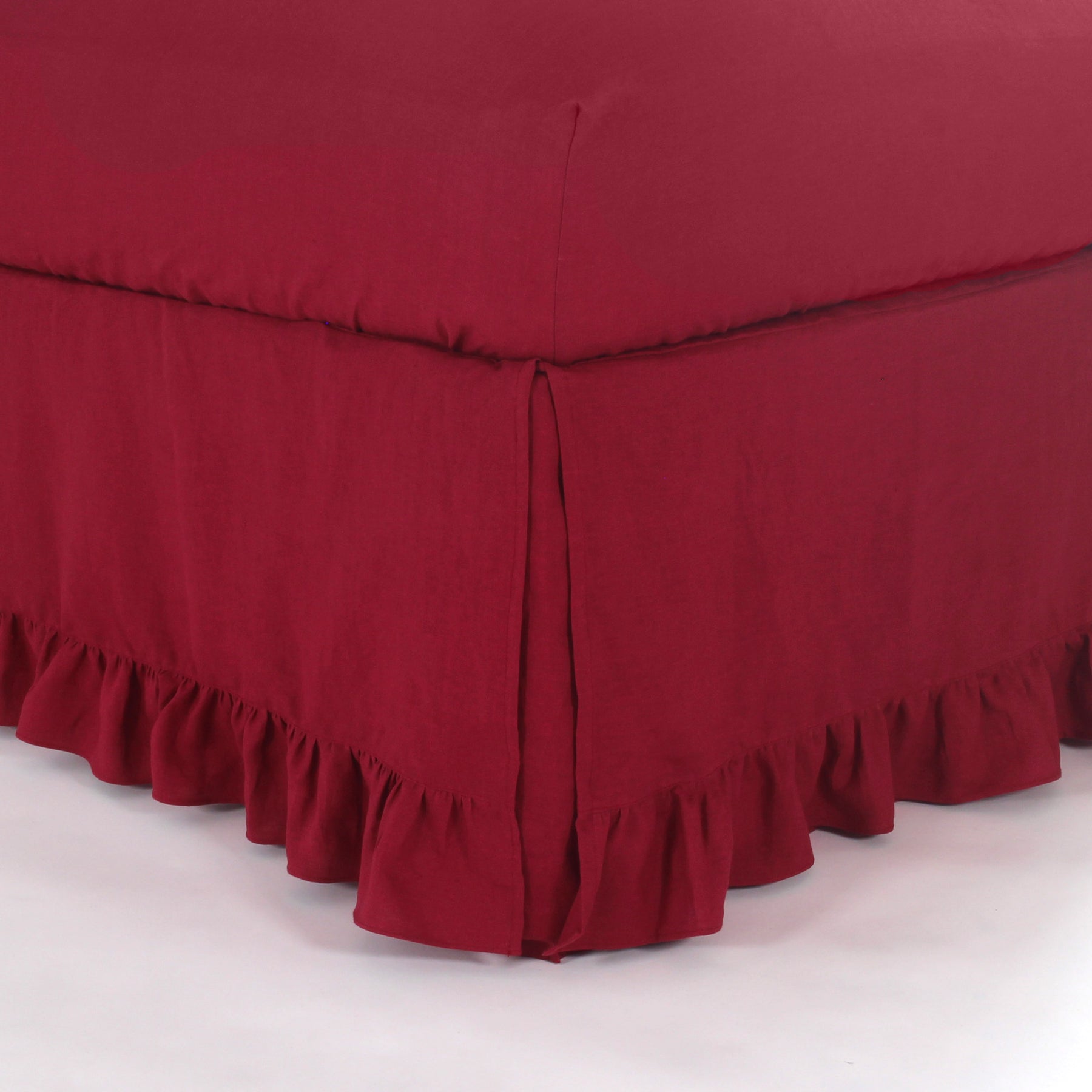 Ruffled linen bed skirt - Burgundy