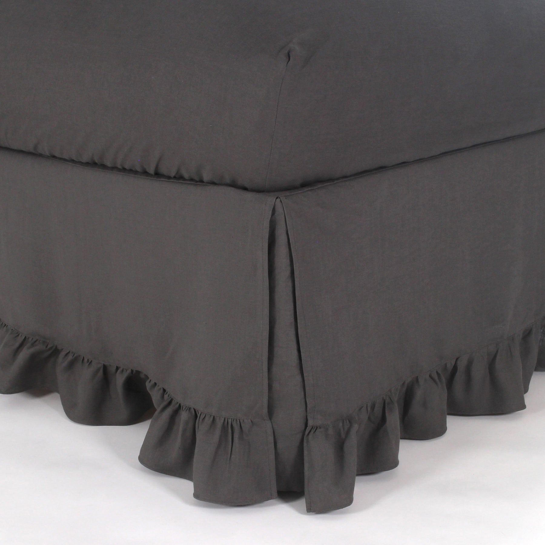 Ruffled linen bed skirt - Lead Grey