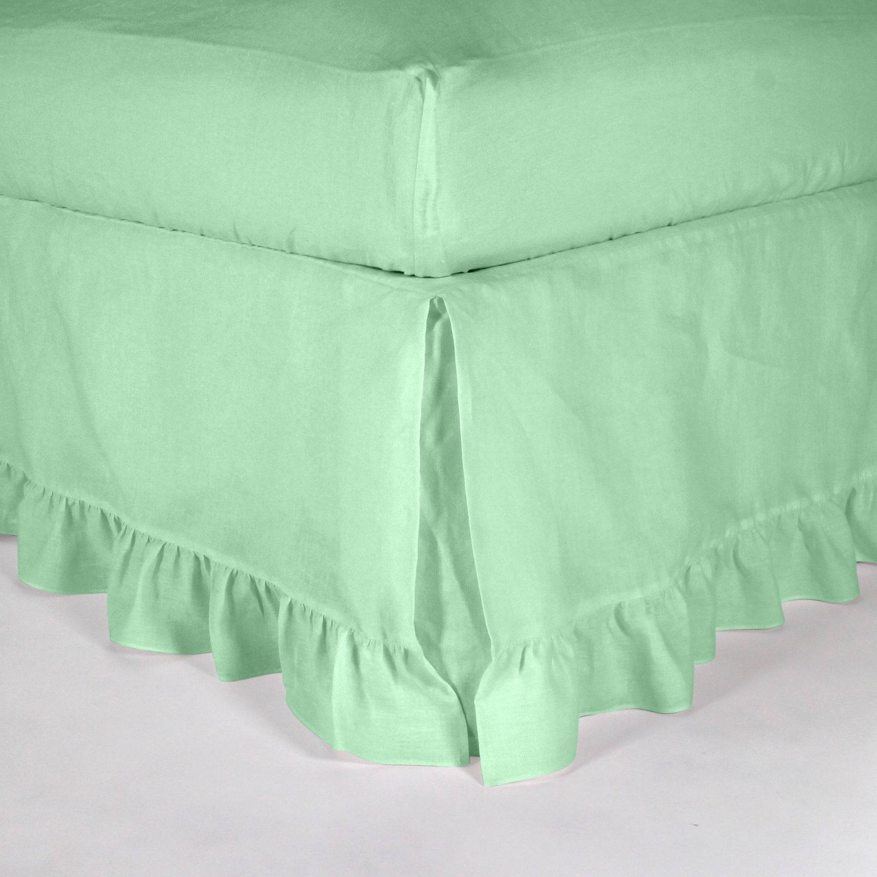 Ruffled linen bed skirt - Mint Green