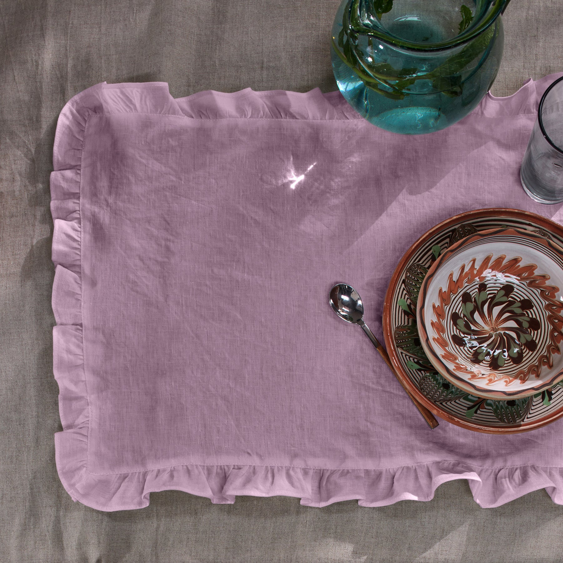 Set of washed linen ruffled placemats - Lilac