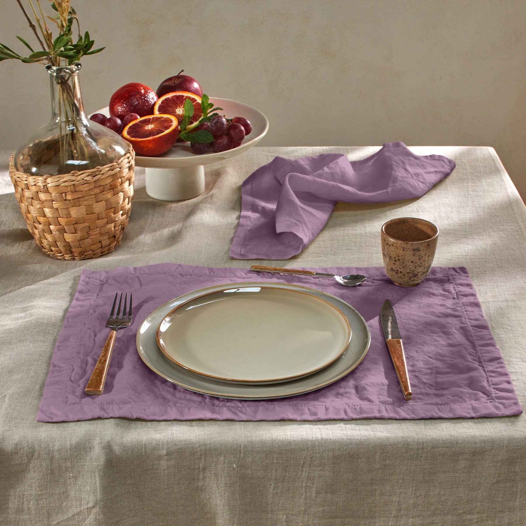Set of plain washed linen placemats - Lilac