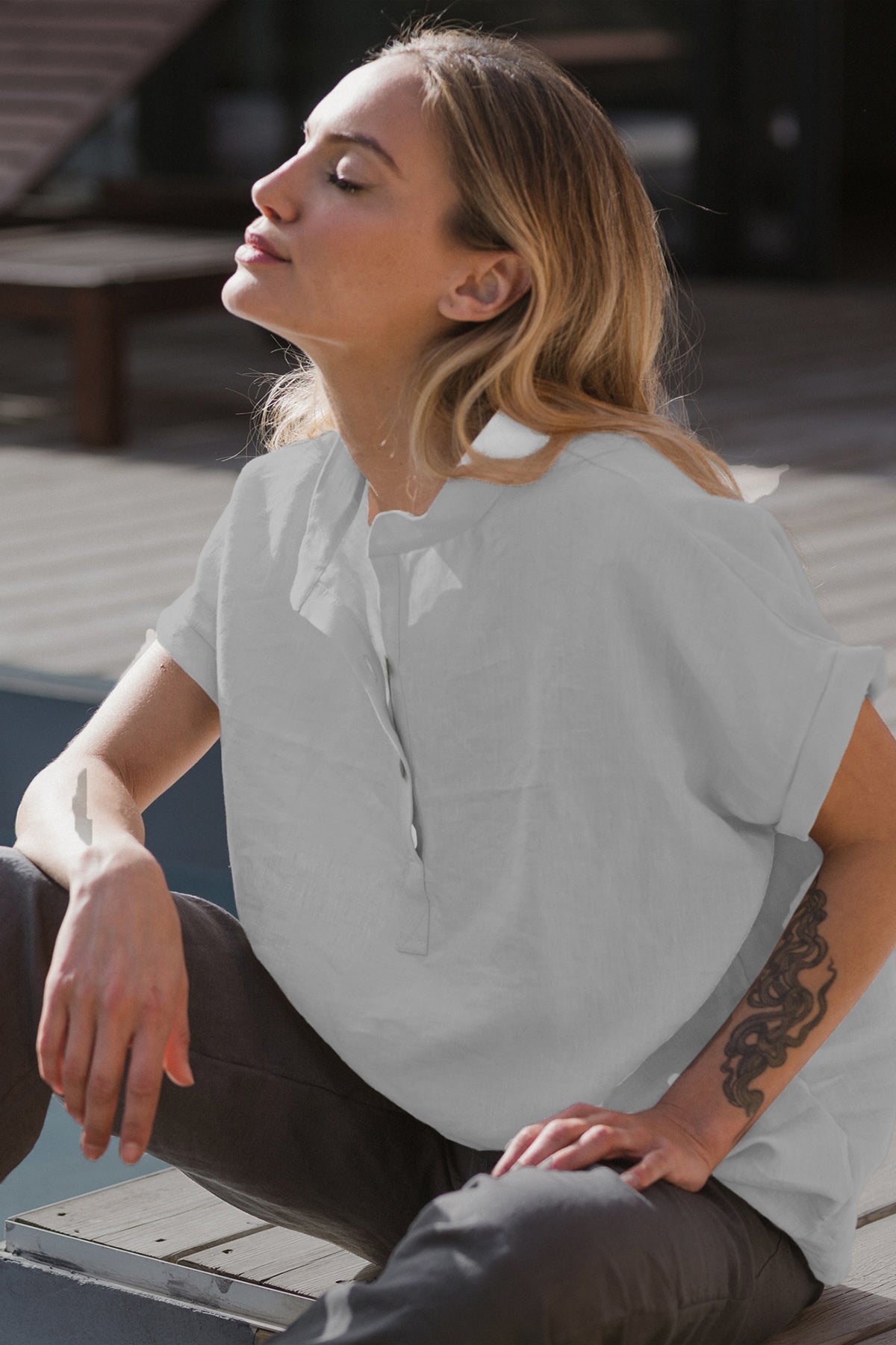 Short-sleeved linen blouse mineral grey - Flor
