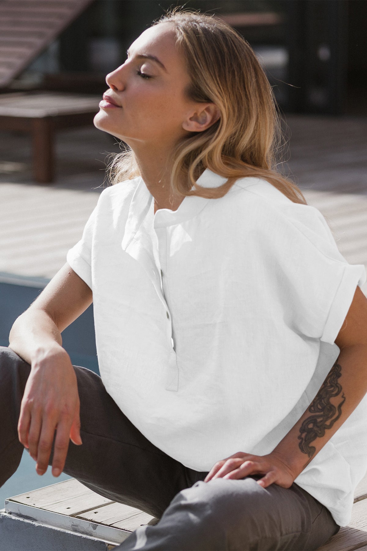 Short-sleeved linen blouse white - Flor