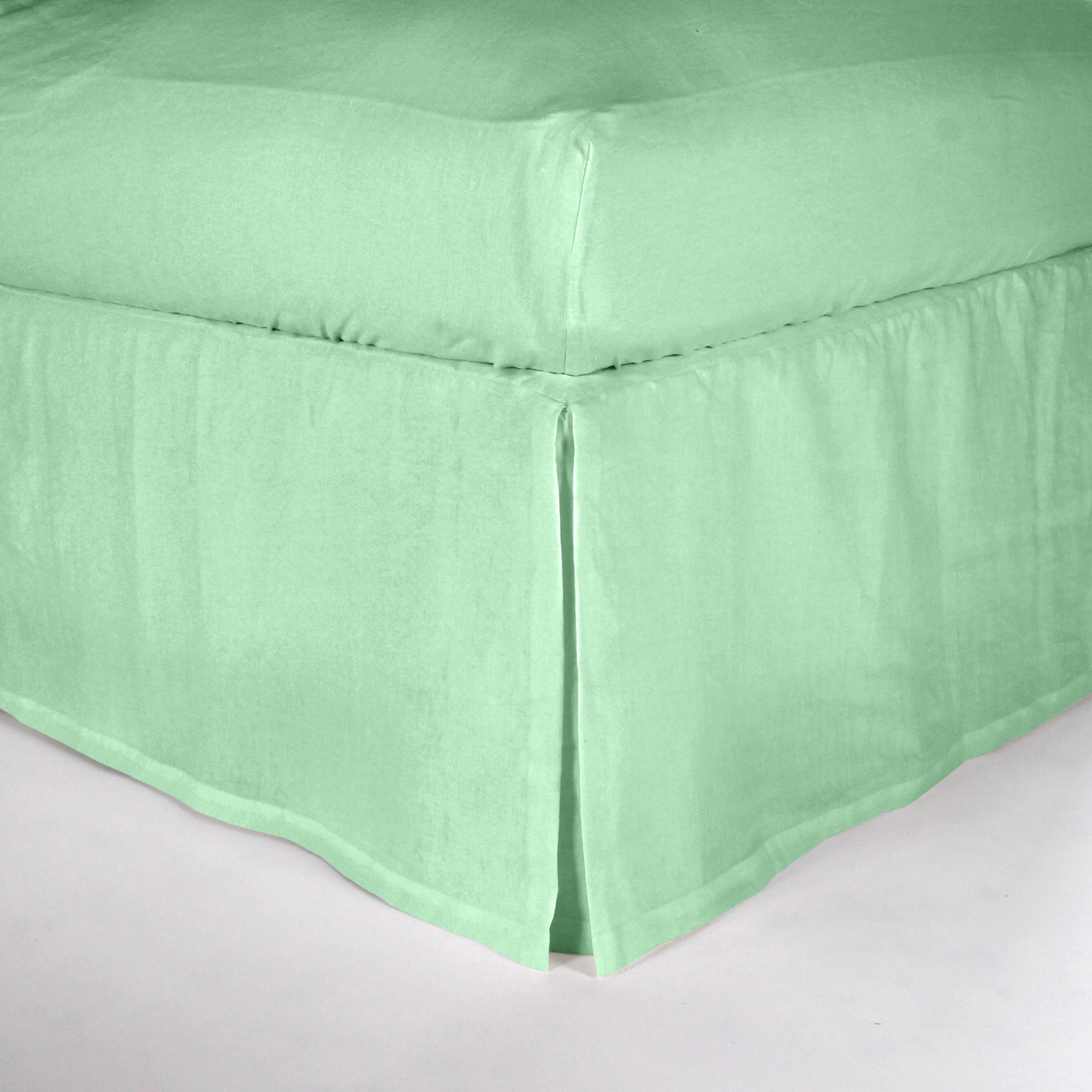 Split-Corner Linen Bed Skirt - Mint Green