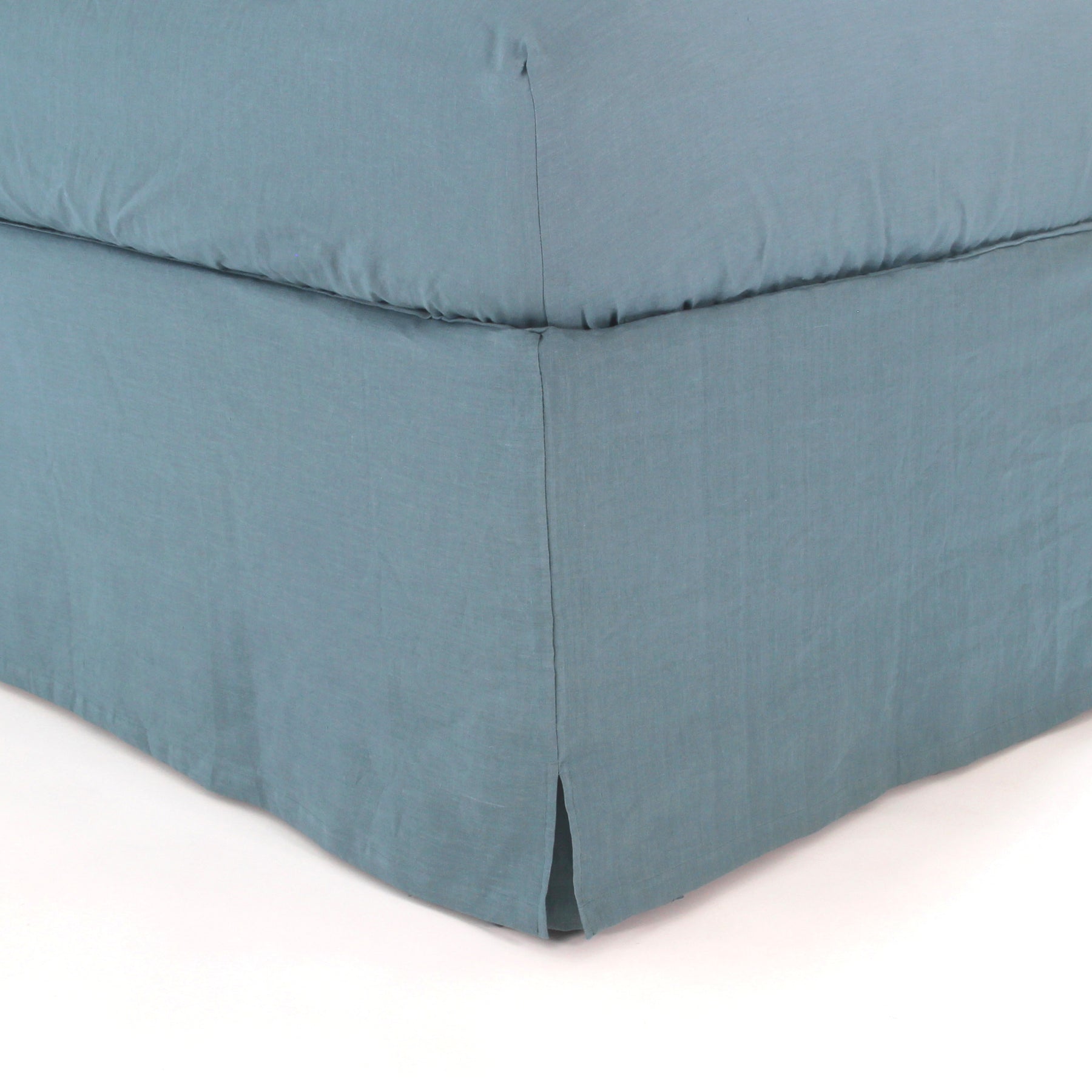 Washed Linen Slit Corners Bed Skirt - French Blue